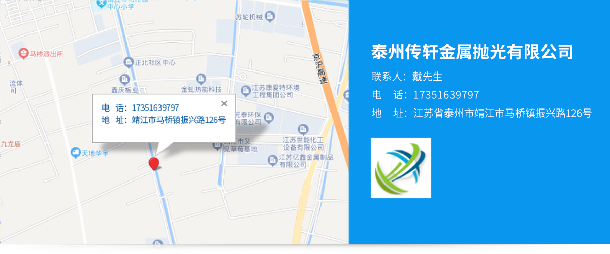 泰州傳軒金屬拋光有限公司位于江蘇省泰州市靖江市靖江市馬橋鎮(zhèn)振興路126號,交通便利。